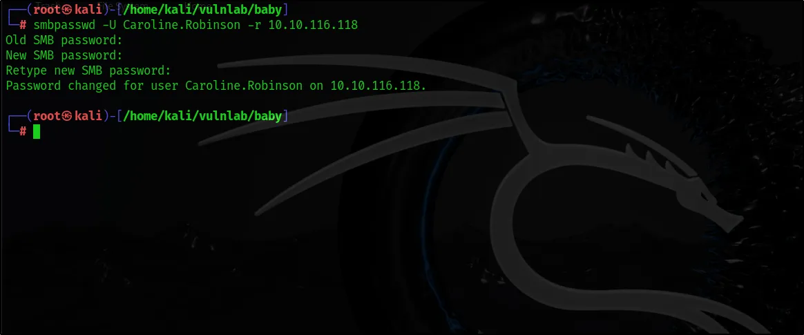 smbpasswd -U Caroline.Robinson -r 10.10.116.118